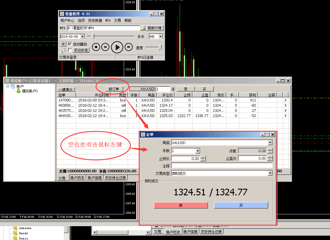 方法2:点"新订单"按钮,或者空白处双击鼠标,弹出的窗口就是下单面板了