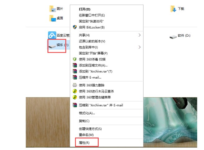 1、在电脑中任意选择一个磁盘并右击选择“属性”。如图1所示
