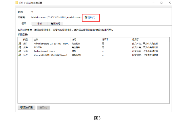 3、在“高级属性”中点击“更改”。如图3所示
