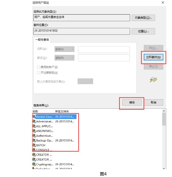 4、点击左侧的“立即查找”就能够找到一些必须要获取权限才能控制的程序或者别的,在搜索结果中选择一个程序,完成后点击“确定”即可。如图4所示