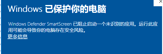 7.如果遇到Windows Defender SmartScreen 已阻止启动一个未识别的应用,可关闭相关的.参考文章如何关闭 win10 defender smartscreen