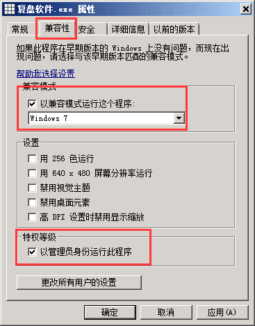修改文件D:\复盘软件\复盘软件.exe的兼容性.