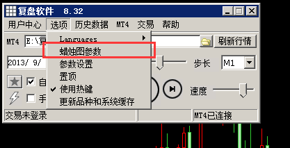 在复盘软件的菜单中的"选项"中有一个"蜡烛图参数"的设置,在每个分钟周期中都可以自己设置初始数量,默认是2000个蜡烛图.