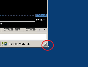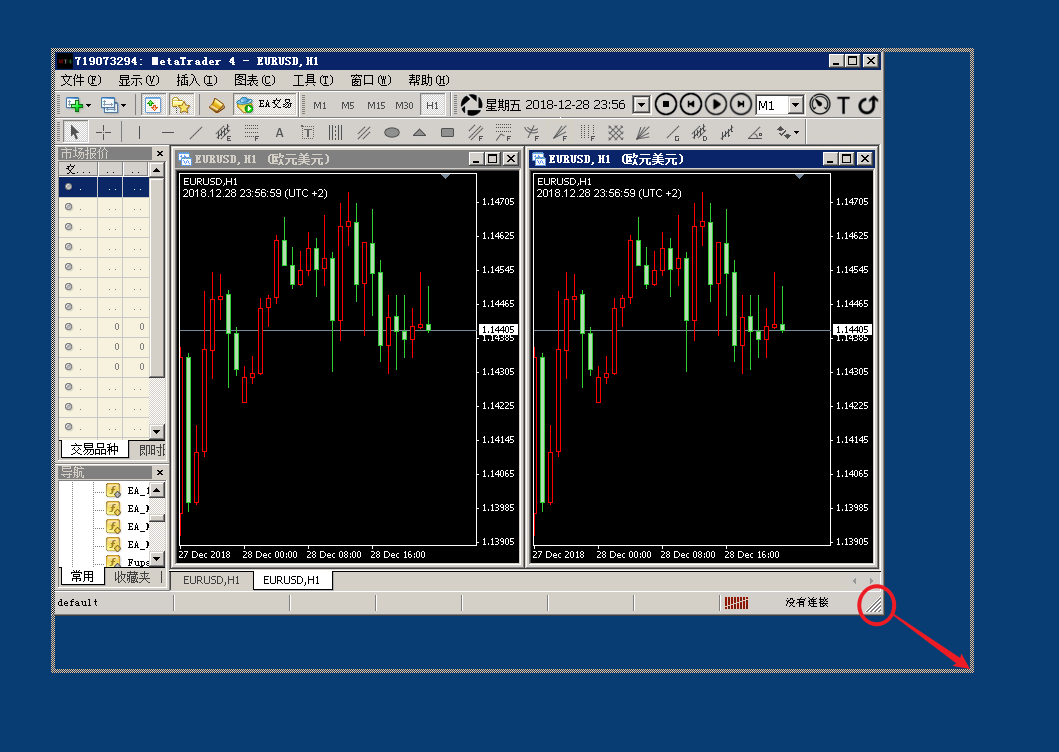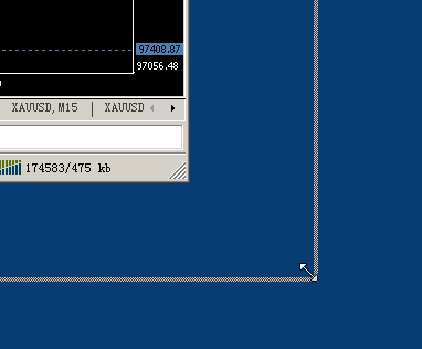 在MT4不是最大化的状态下,拖动整个MT4最外面的右下角区域.见下图的圆圈处,可以拖拽到双屏,或者3个屏幕去 MT4支持拖拽屏幕到双屏幕,以及3个4个以上的屏幕.具体操作步骤如下: