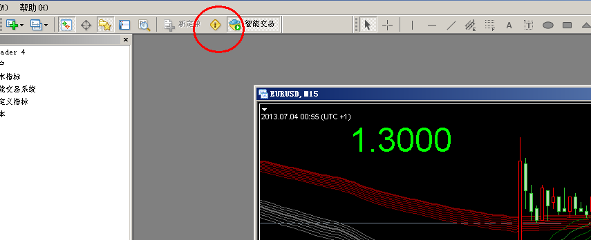 在MT4目录中运行文件"metaeditor.exe",或者在MT4中运行如下按钮,就可以打开指标编写窗口.