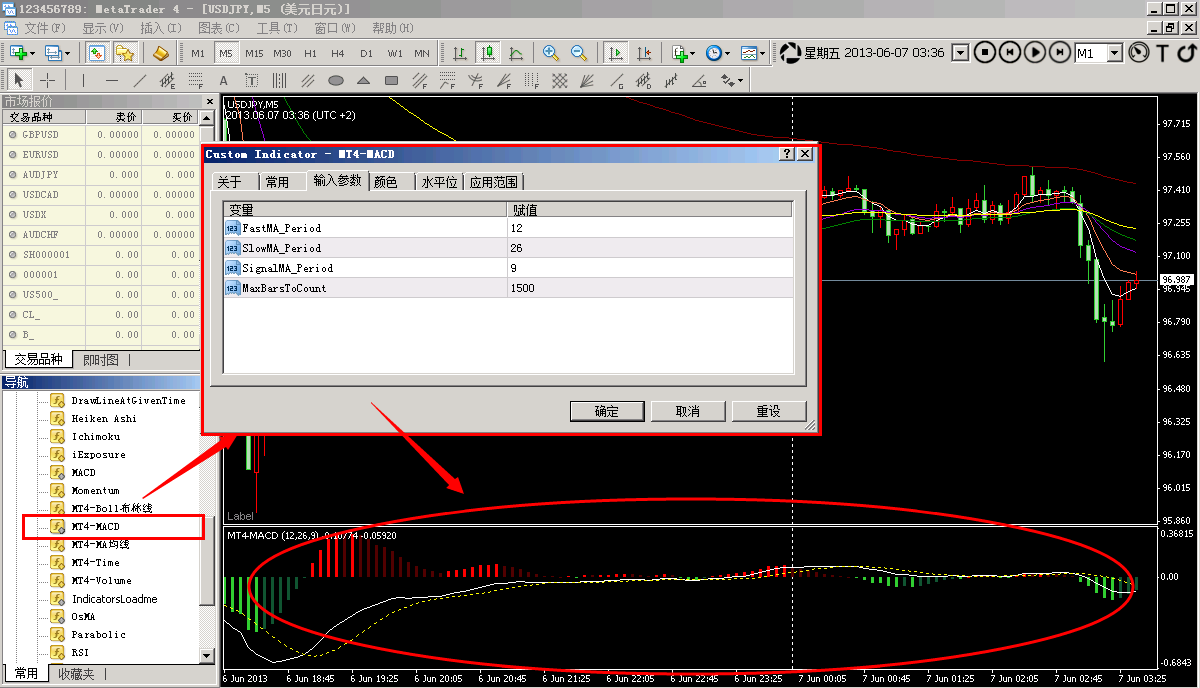 由于MT4自带的MACD存在显示不友好等方式.复盘软件提供了更加好用和准确的一个版本.在指标中直接添加即可.