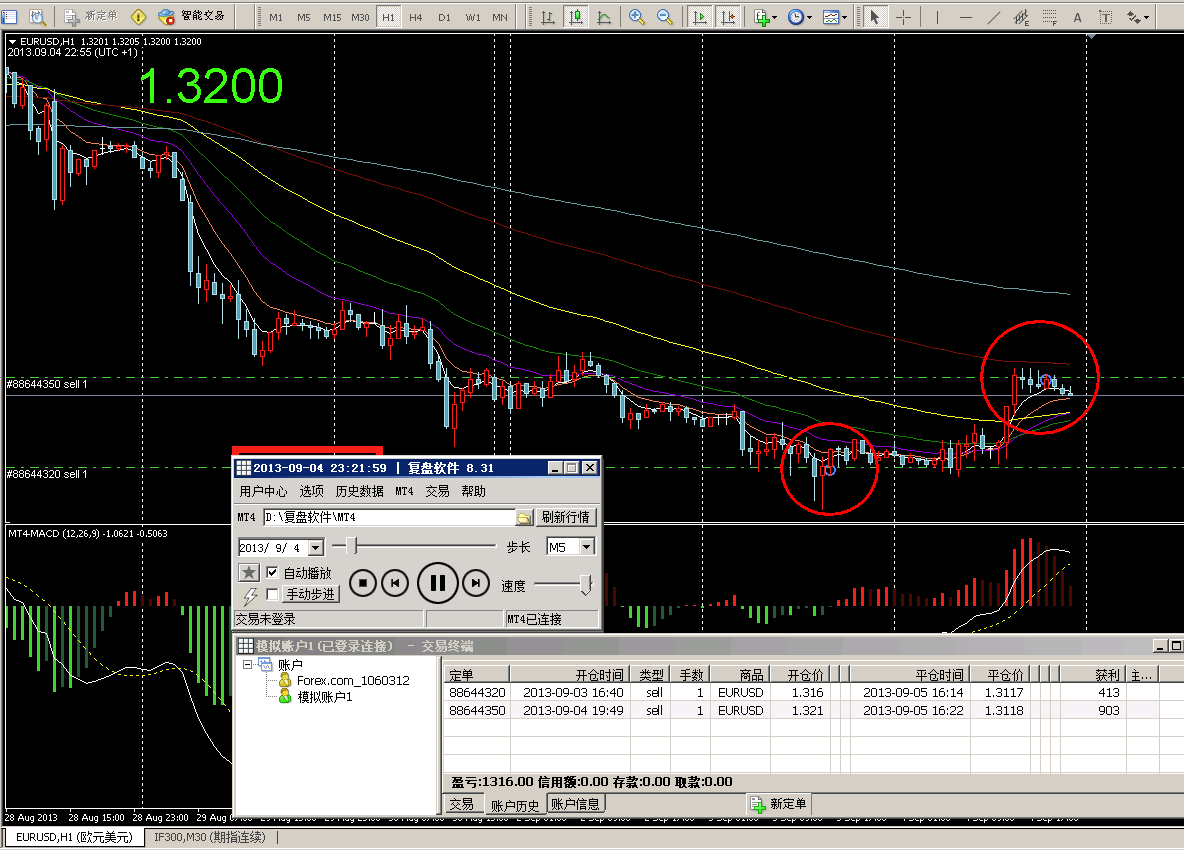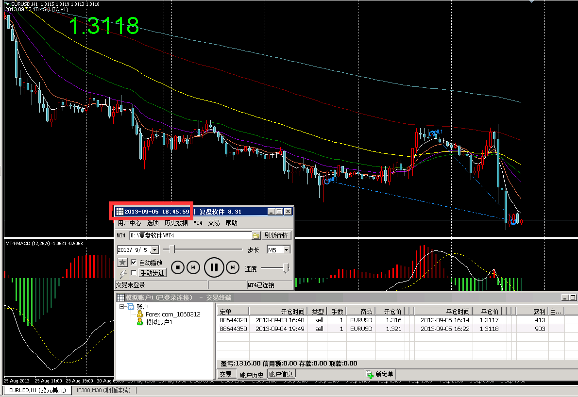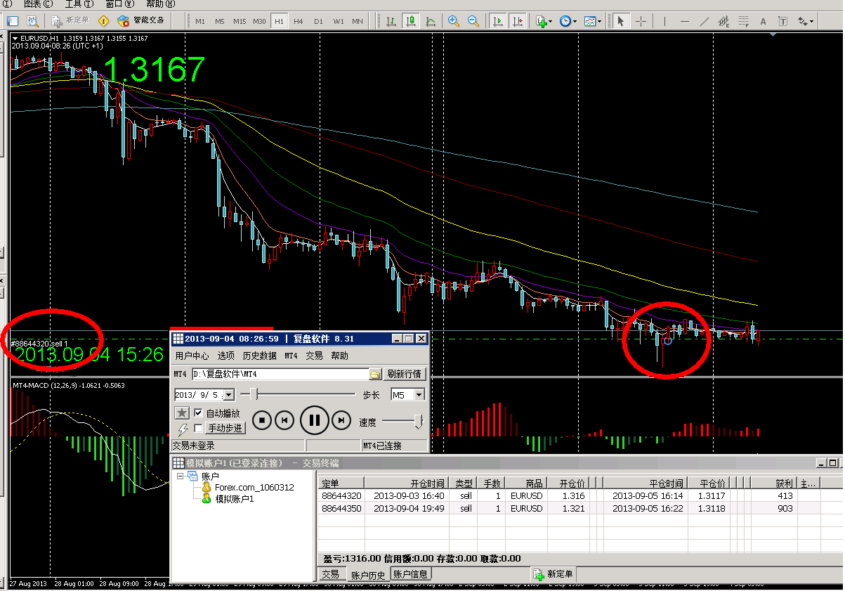 不管是自己交易的记录,还是导入的高手记录,都可以完整的显示在MT4窗口中.