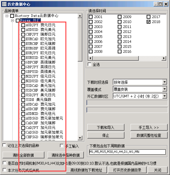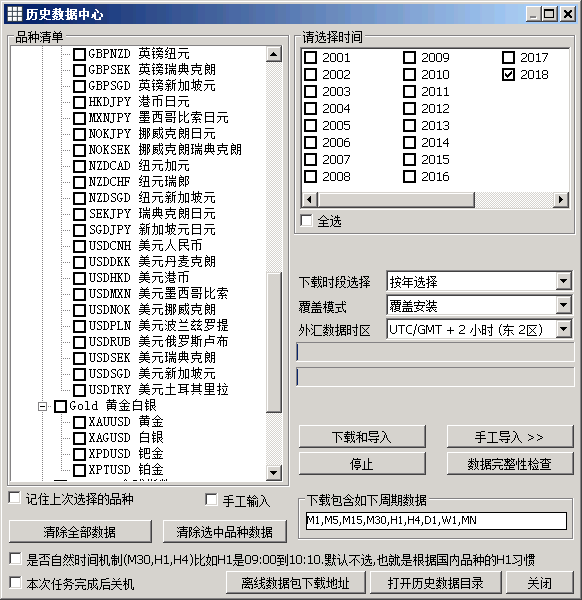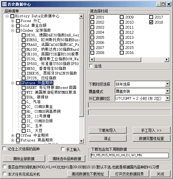 其他的外汇和外盘期货,外盘指数的数据,全部加起来60多个,历史数据有的是从2001年开始,有的是从2014年开始不等.
