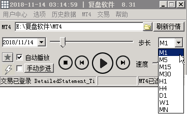 在程序主窗口中.步长可以选择从M1到MN,对应于1分钟到到月.详细对应关系见:"周期关键字"章节.