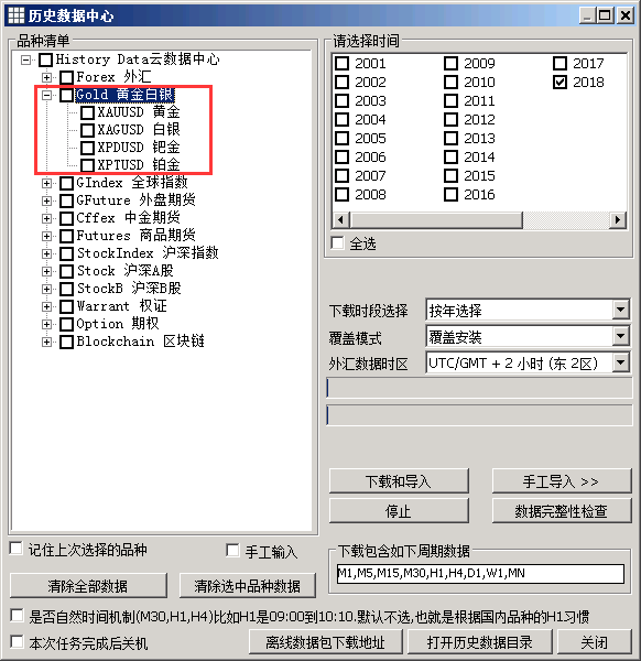 黄金白银历史数据默认时区:东2区