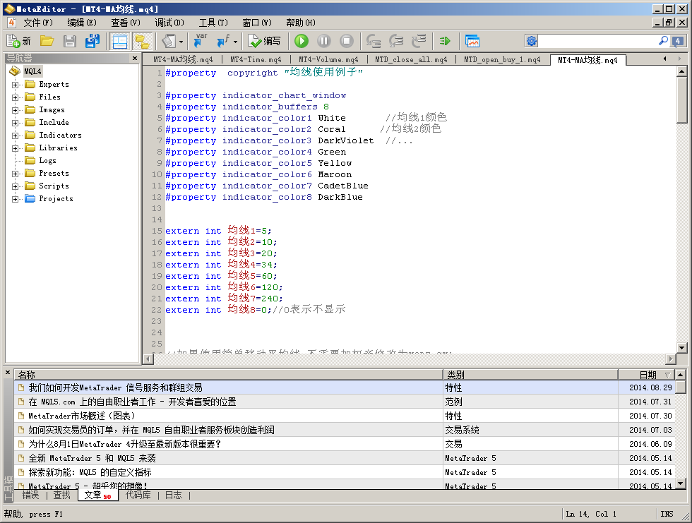 600及以上的版本中,指标目录是\mt4\MQL4\Indicators\MT4-MA.ex4
