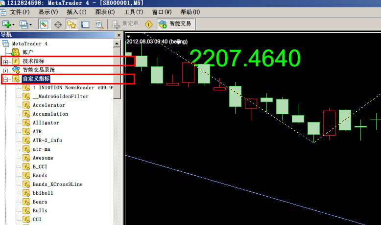 "MT4自定义指标":同时还可以使用网络上大量的MT4指标,把指标copy到指标目录