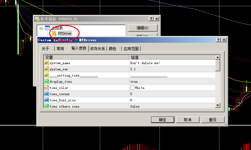 在打开每个小窗口的指标中,都会存在一个MTDriver的指标,这是复盘软件自带的,不要删除,本指标的功能主要用于一些显示.详细指标参数如下:
