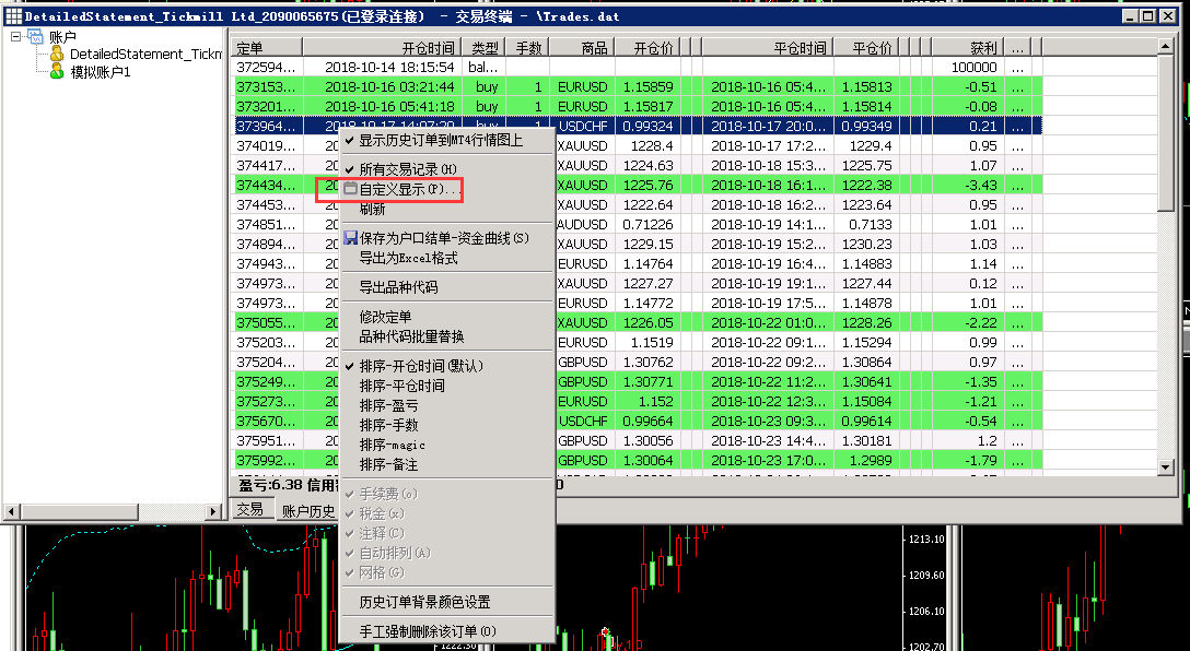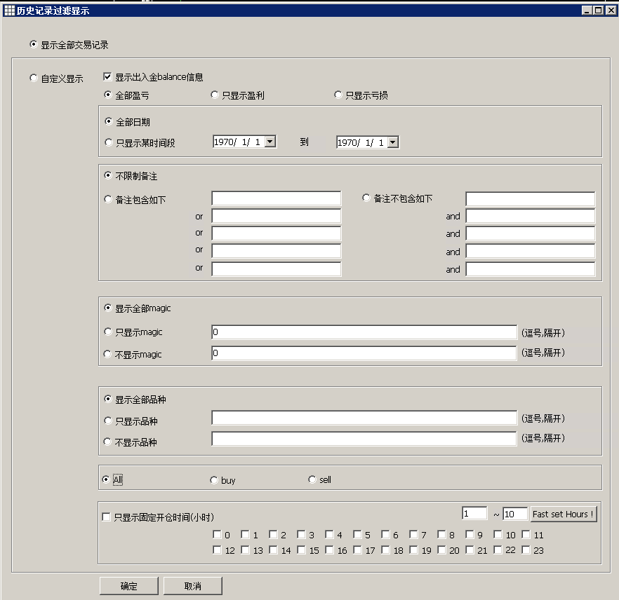历史交易记录的过滤显示,强大灵活的自定义,比如可以设置只显示某个品种,某个时间范围,备注包含哪些词语,或者只显示盈利或亏损单.