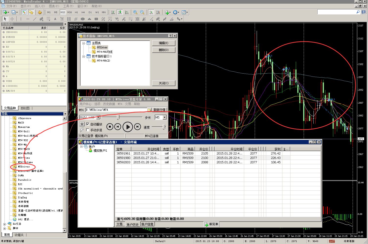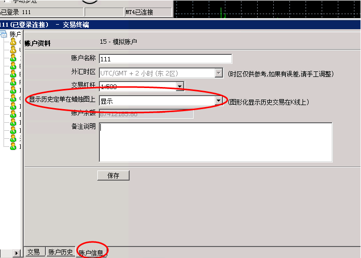 情况1:如果是繁体操作系统,软件存在中文目录的情况下,也会导致无法显示开平仓线.解决办法就是软件不要放在中文目录里,可以使用比如 c:\tester\情况2:有一个默认的指标叫"MTDriver",这个是用来显示交易记录用的,一般在点"刷新行情"或者重启软件后会自动加载.如果使用自己的模板,记得自己添加到模板进去.另外.如果你的窗口背景是白色的,请改为黑色,因为线本来是浅白色的会被白色掩盖了.就看不出来了